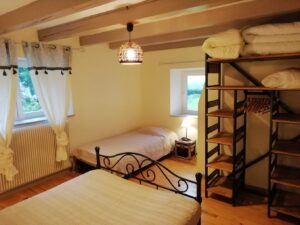 Le Domaine de Solène a eu l’occasion de travailler avec ROMANBRANCE dans le cadre de la rénovation de la chambre dite « bleue ». Ne me demandez pas pourquoi elle est appelée ainsi, elle n’a jamais été bleue. C’est là l’un des nombreux secrets de Solène… Quoiqu’il en soit, une étagère dessinée par votre hôte ainsi que deux tables de chevet ornent cette chambre afin d’y donner un décor plus douillet et cocooning.